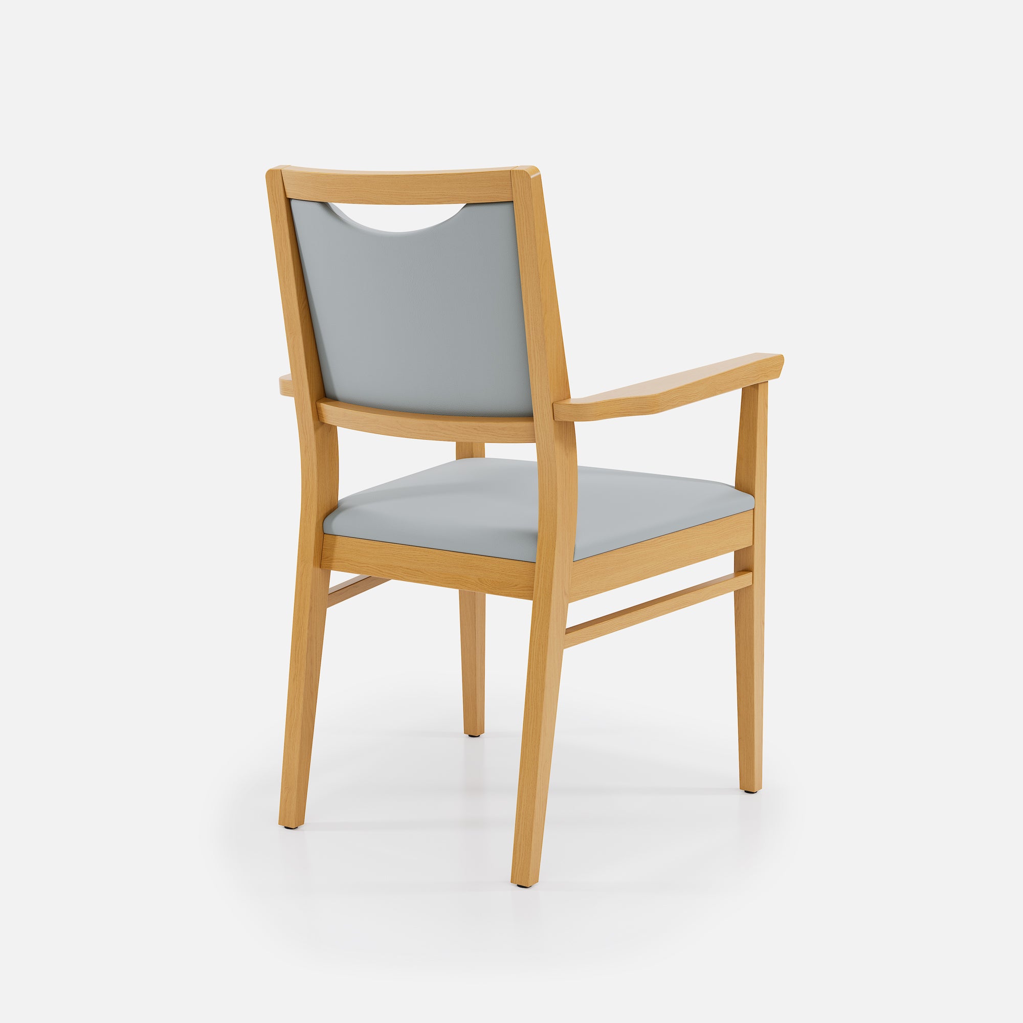 Les longs accoudoirs ergonomiques permettent de s'asseoir et de se lever plus facilement qu'avec une chaise classique. Sa prise en haut du dossier et ses patins en ertalon permettent de la déplacer facilement et sans effort.