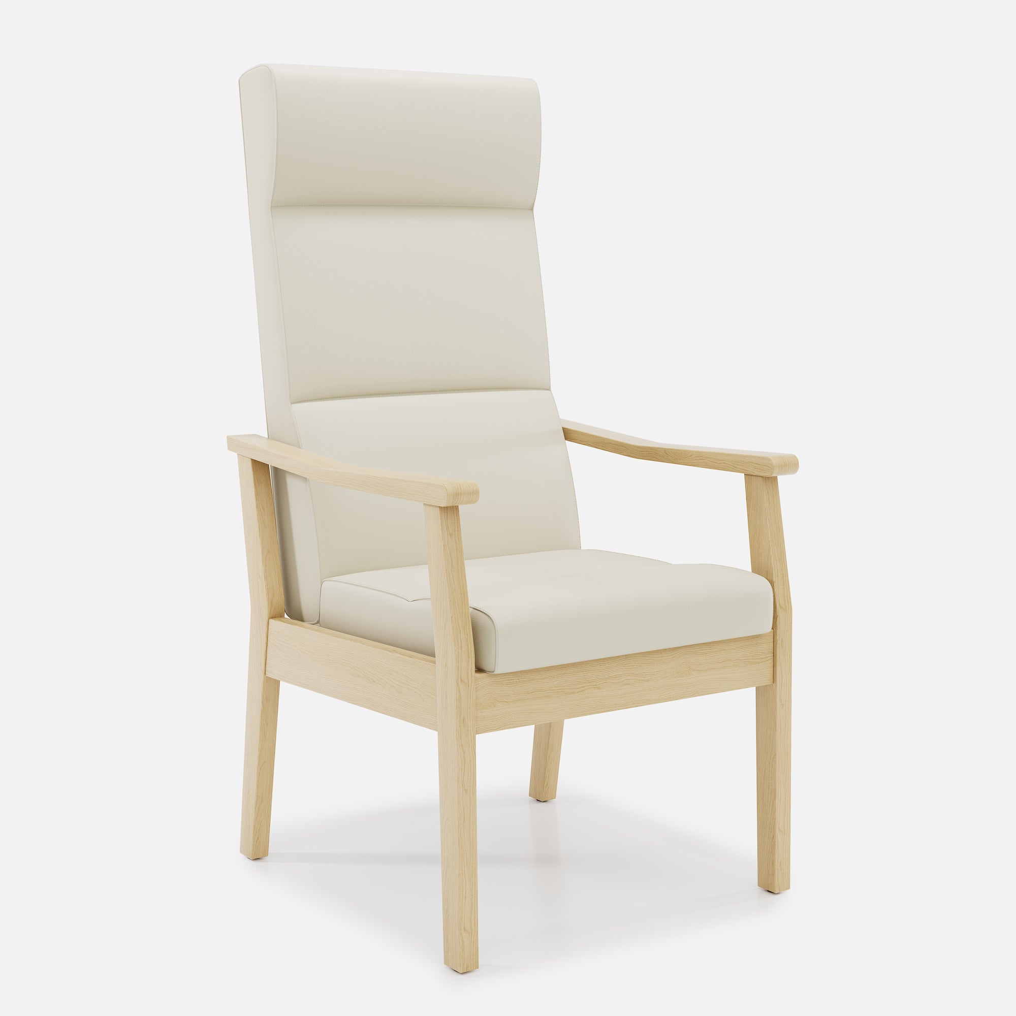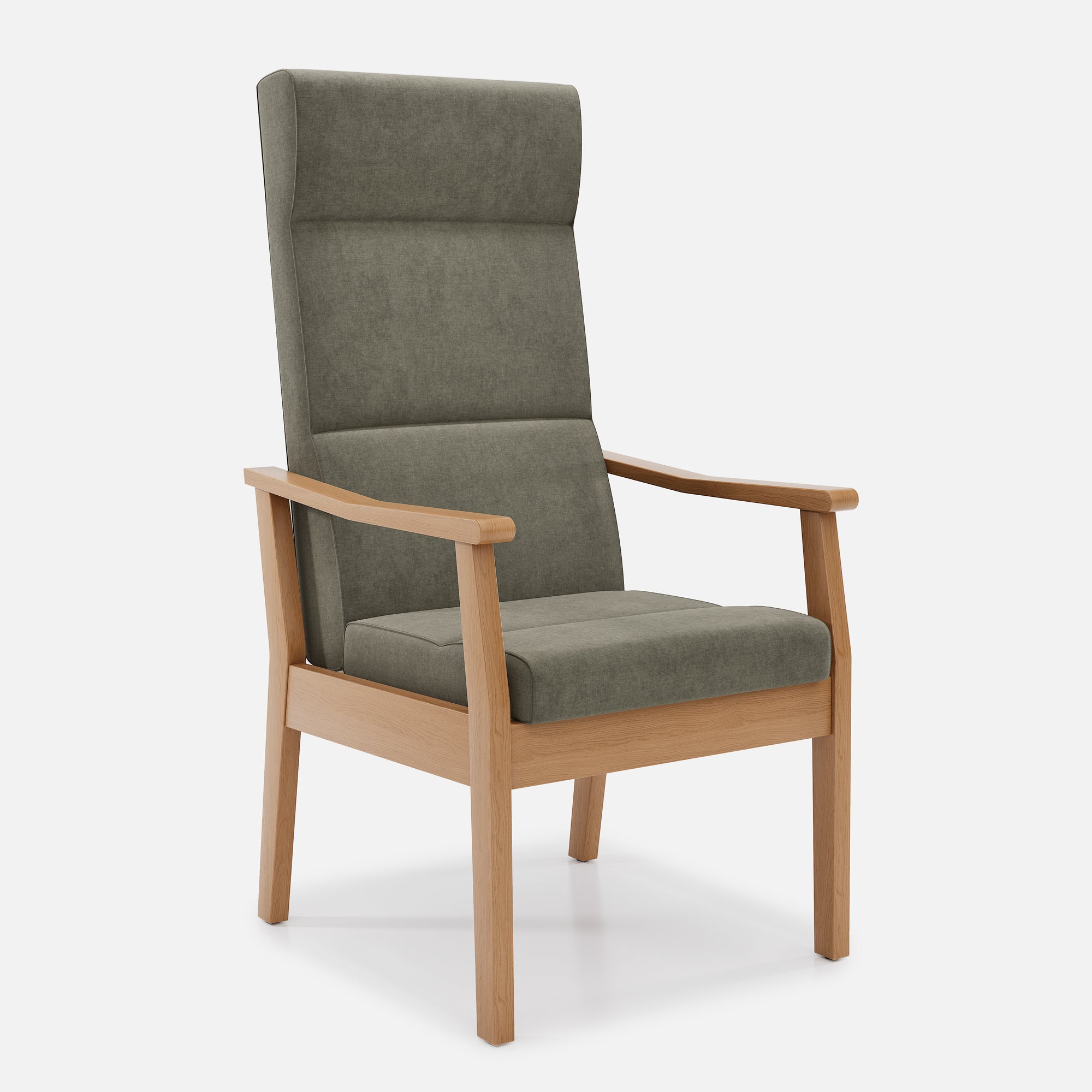 La hauteur et la profondeur de son assise permettent de s’y asseoir tout en douceur et de se relever sans efforts. Les accoudoirs longs et arrondis sont agréables au toucher et simples de préhension au moment des changements de positions.