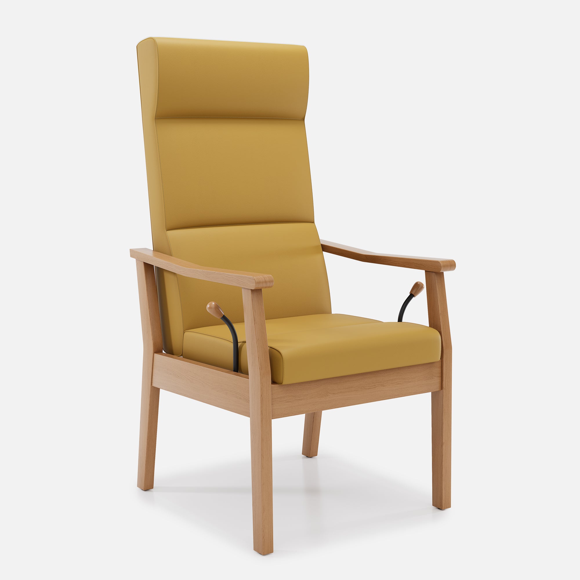 La hauteur et la profondeur de son assise permettent de s’y asseoir tout en douceur et de se relever sans efforts. Les accoudoirs longs et arrondis sont agréables au toucher et simples de préhension au moment des changements de positions.