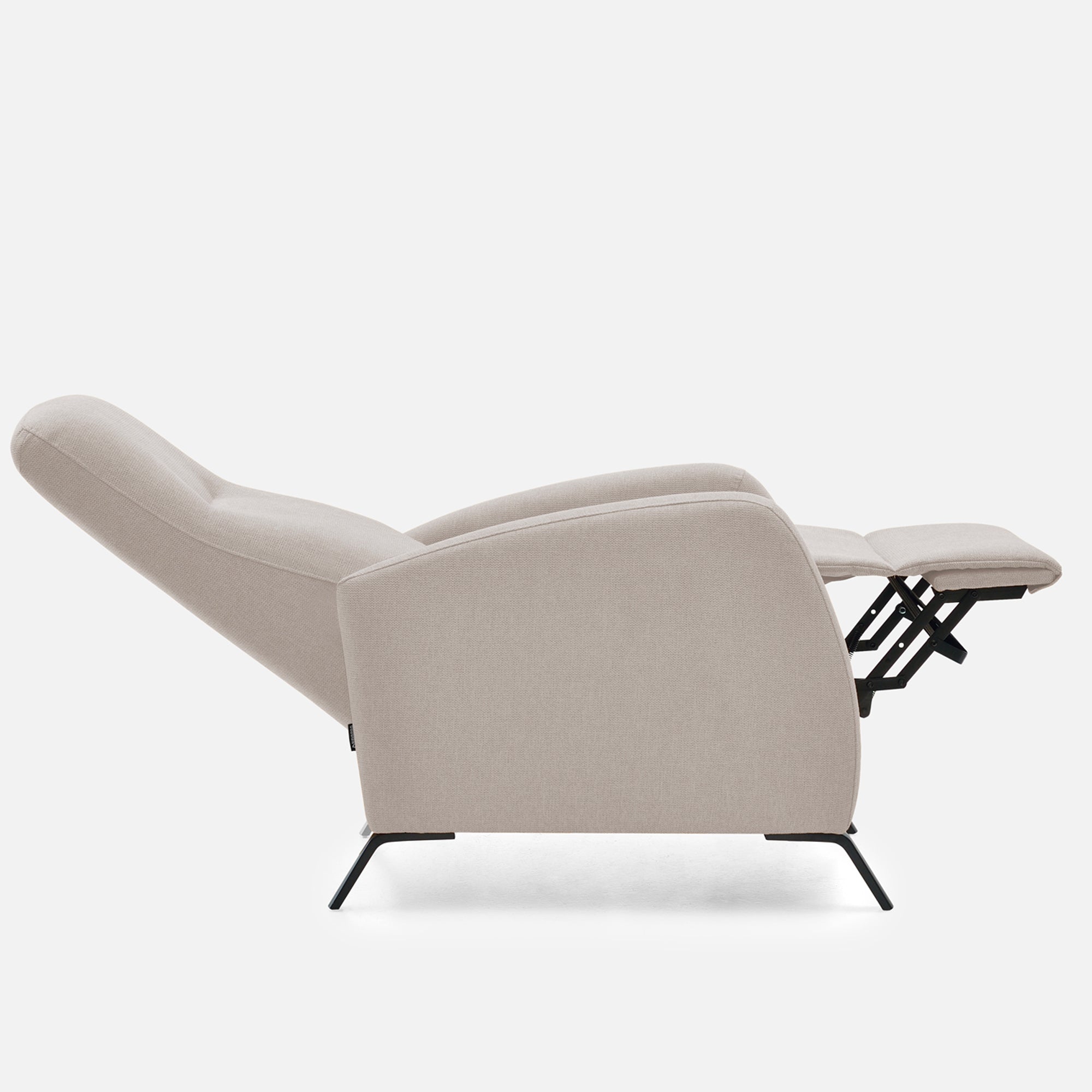 La fonction relax manuel se contrôle en toute simplicité : une légère poussée vers l’arrière permet d’incliner simultanément le dossier et le repose-pieds, sans aucun besoin de motorisation. Cette mécanique fluide et fiable vous permet de passer facilement d’une position assise à une position de relaxation complète.