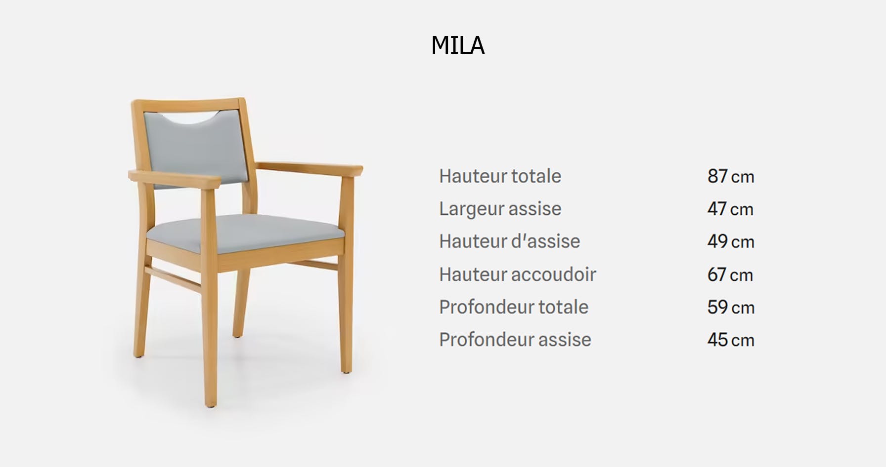 Les caractéristiques de la chaise Mila